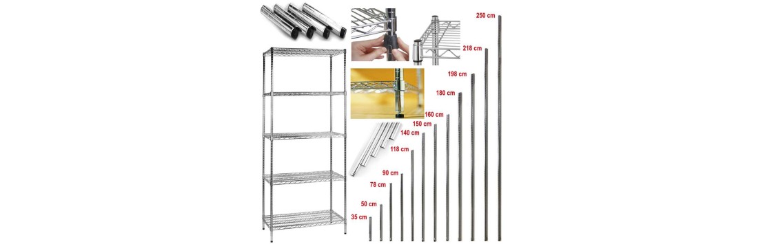 I montanti sono provvisti di apposite scanalature, con interasse ogni 2,5 cm. sulle quali è possibile fissare delle guancette in plastica (non comprese), che permettono di posizionare i ripiani all'altezza desiderata.