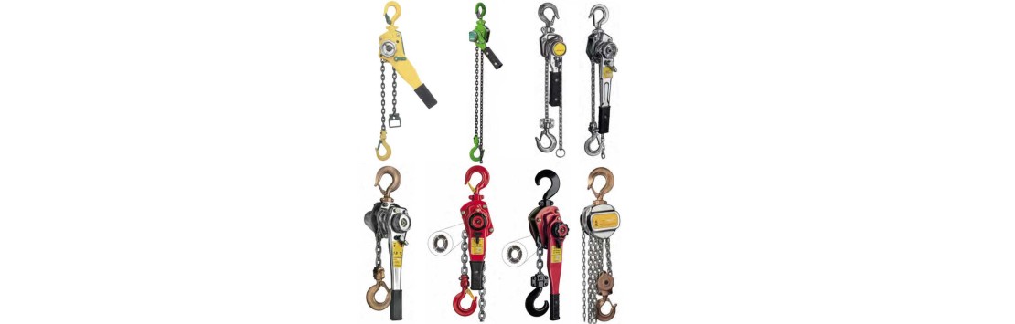 Sollevatore, montacarichi professionale alzatira ATEX a leva, con catena di sollevamento manuale e gancio girevole con linguetta di sicurezza, per trazione, tensionamento, movimentazione e sollevamento.