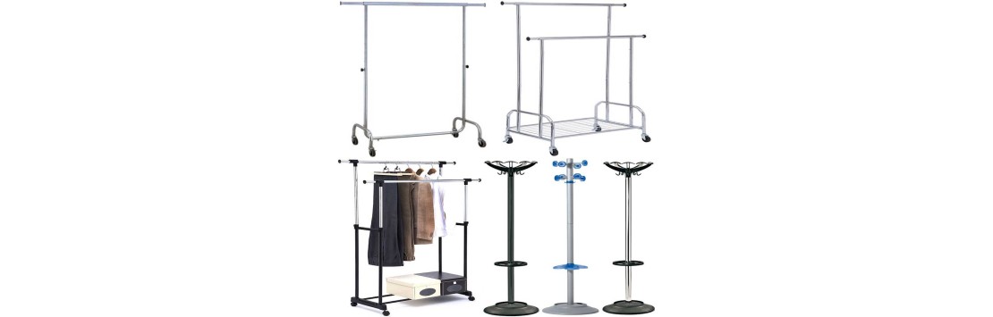 Set carrello porta abiti composto da 4 tubolari e 4 ruote girevoli (2 con freno), barra porta abiti, grucce ed 1 piano alla base + 1 piano alto.