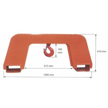 Mod. NMK40F Portata Kg. 4000 Dimensioni forche mm. 155x70 Lunghezza esterna telaio mm.1000 Lunghezza interna telaio mm.615 Altezza telaio mm.410 Altezza gancio mm.160 Peso Kg.49