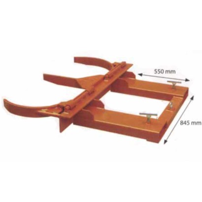 Gancio di elevazione merci professionale, composto da un robusto telaio in acciaio verniciato, inforcabile, dotato di due viti per bloccaggio regolabile alle forche, per evitare lo sfilamento dello stesso e di un relativo gancio girevole con linguetta di sicurezza, ad esso collegato.