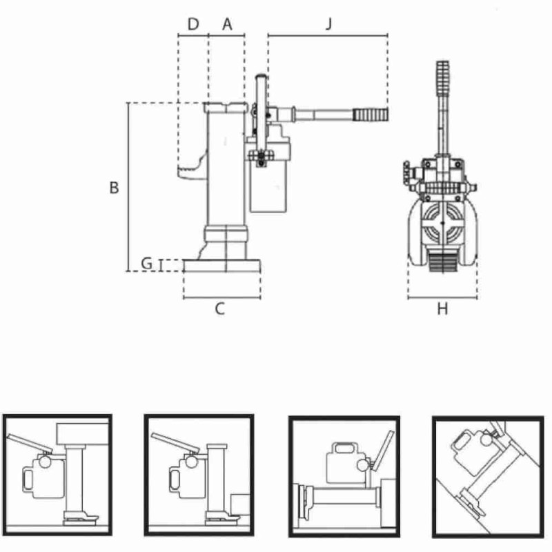 Binda con pompa idraulica utilizzabile in qualsiasi posizione, senza avere perdite d'olio per il sollevamento sicuro di carichi pesanti.