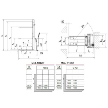 Altezza di sollevamento forche h3 + h13 mm. 2963