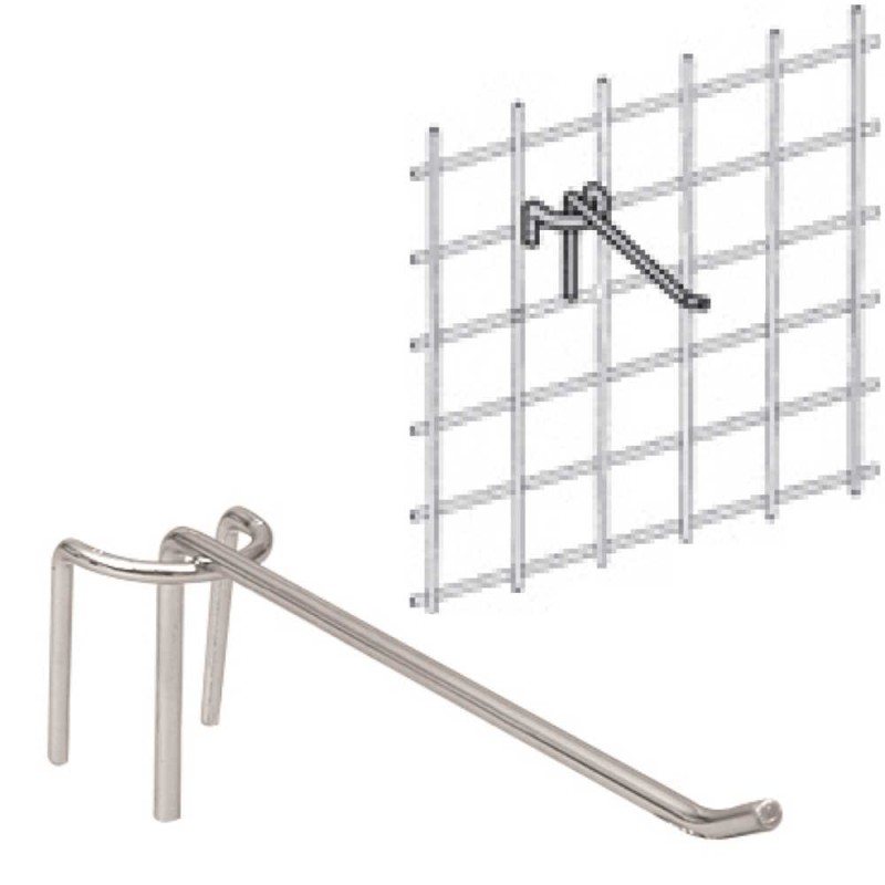 Gancio porta blister semplice tutto in tondino di acciaio, lunghezza cm.30 per appendere in maniera, chiara ed ordinata, su griglie espositive, oggetti per la vendita o per l'esposizione, per allestire eventi, mostre, negozi, fiere, vetrine.