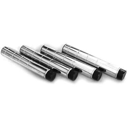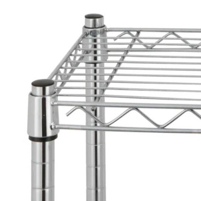 Ogni scaffale necessita di 4 tubolari portanti in acciaio cromato, posti lateralmente ed inseriti agli angoli dei ripiani del sistema componibile della scaffalatura Archimede.