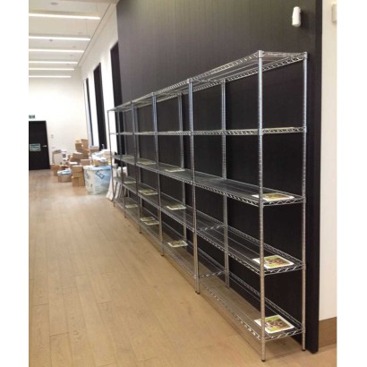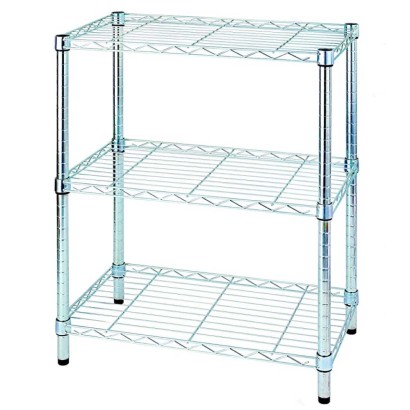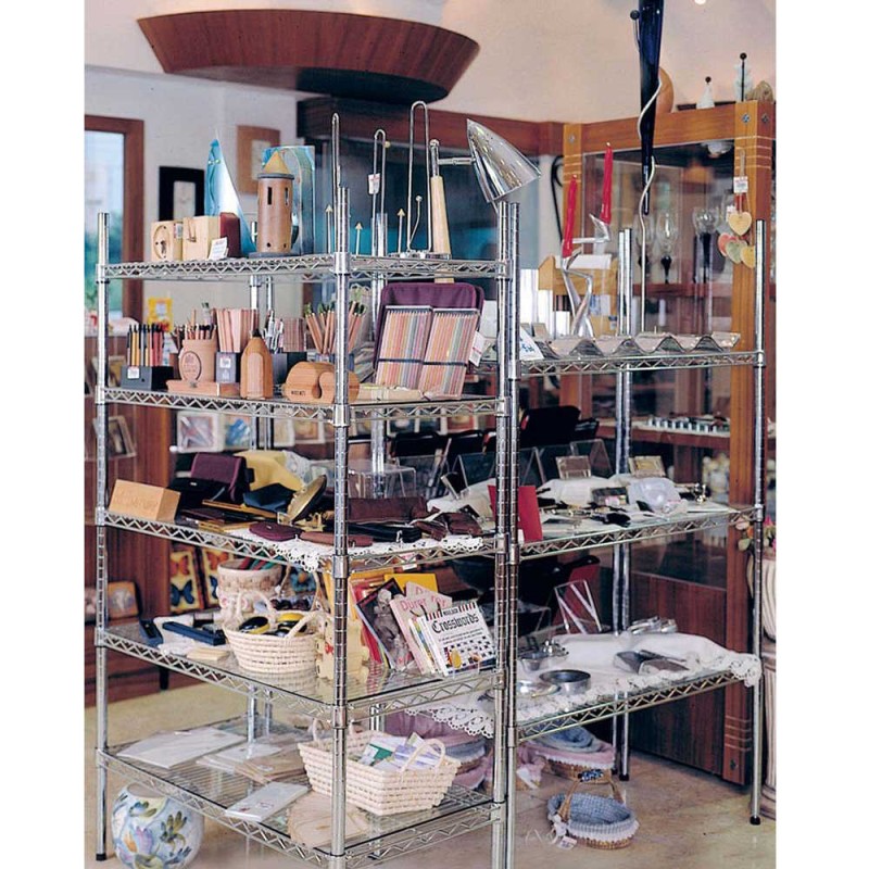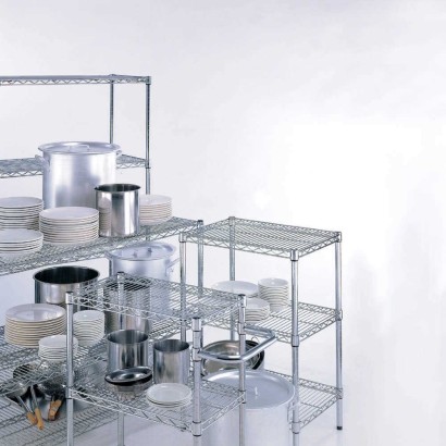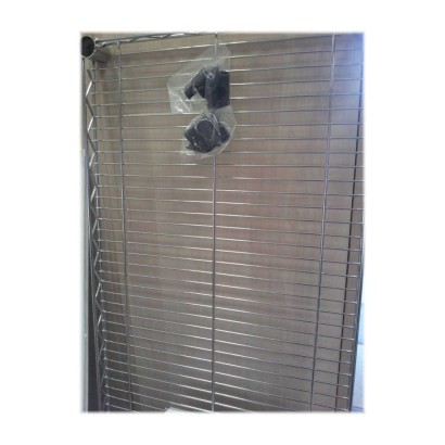Ripiano grigio cromato robusto, di grande portata, in filo d'acciaio di ottima finitura, completo di clip di montaggio (guancette), per il fissaggio ai tubolari (non compresi), che può essere regolato all'altezza desiderata in corrispondenza delle apposite scanalature presenti sui montanti ogni 2,5cm. con possibilità di poter inserire lo scaffale in altezza larghezza e profondità, ovunque si desideri.