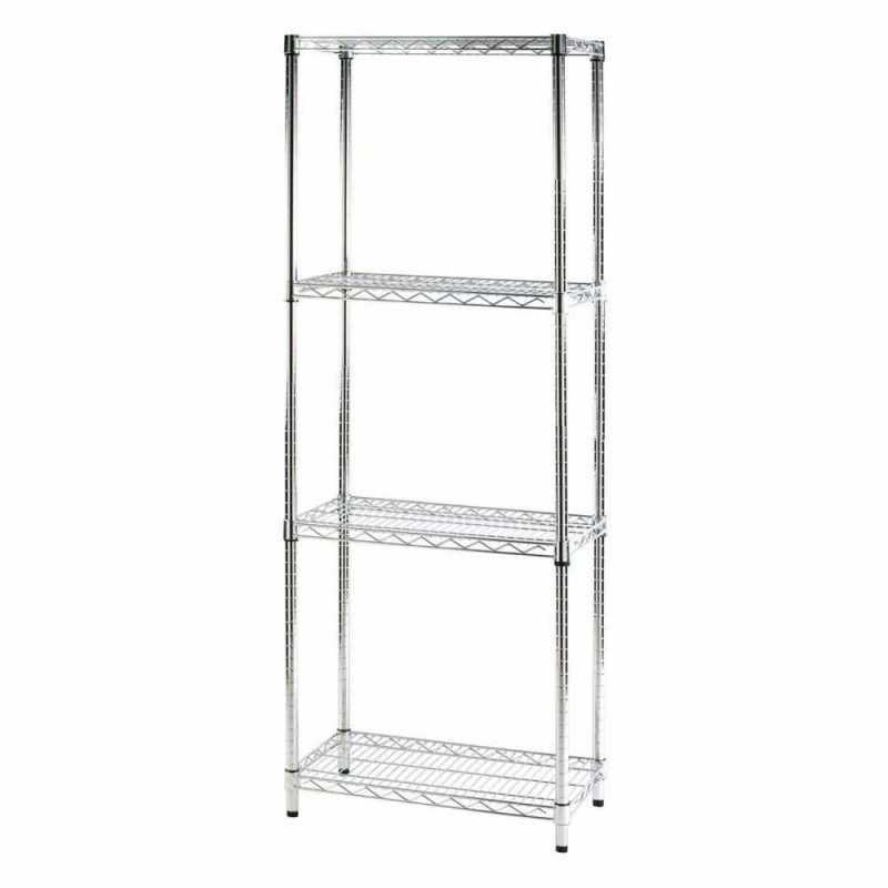 Scaffale componibile per interni Archimede cm.35x60xh.168 a quattro ripiani con portata Kg.100 in filo d’acciaio cromato, completo di guancette per il fissaggio dei piani all'altezza desiderata in corrispondenza delle apposite scanalature presenti sui tubolari ogni 2,5cm.