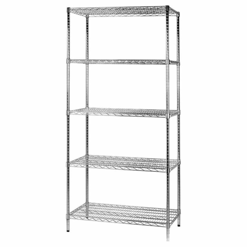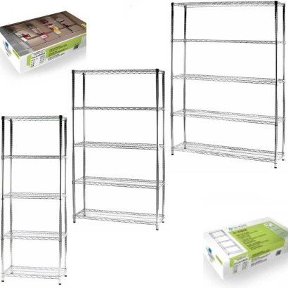 Scaffale componibile per interni Archimede cm.60x90xh.200 a cinque ripiani con portata Kg.100 in filo d’acciaio cromato, completo di guancette per il fissaggio dei piani all'altezza desiderata in corrispondenza delle apposite scanalature presenti sui tubolari ogni 2,5cm.