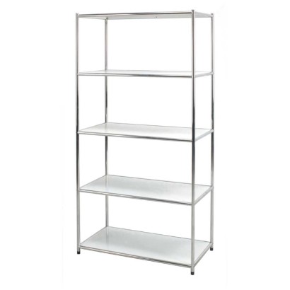 Mod. E-408016WF - Libreria cromata con 5 ripiani bianchi 40x80x160
