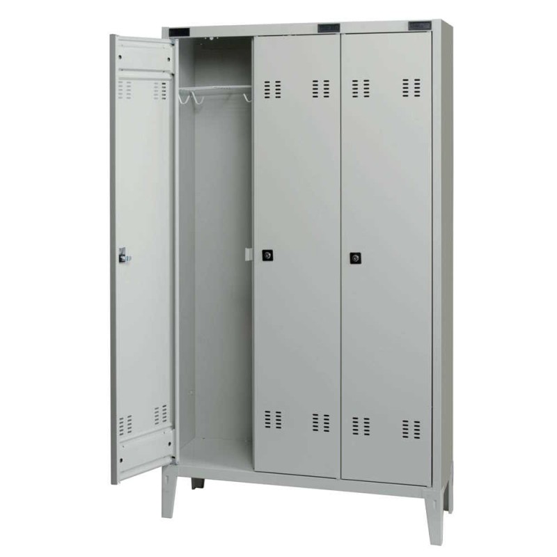Tavolo da laboratorio professionale con struttura metallica in tubolare 60 x 40 e piano in laminato colore grigio chiaro oppure su richiesta colore tek con spessore 27 mm e bordi arrotondati in ABS nero e dotato di crociera inferiore poggia piedi e cassettiera a 3 cassetti, portautensili ed oggetti, su cuscinetti a sfera, con altezza utile mm.70.