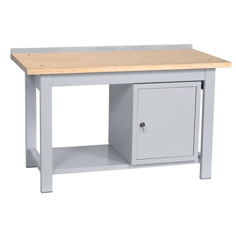 Mod. B315001ARMF - mm.1500x750x900h - banco con piano superiore in faggio multistrato, piano inferiore e 1 armadietto con all’interno 1 cassetto e 1 ripiano