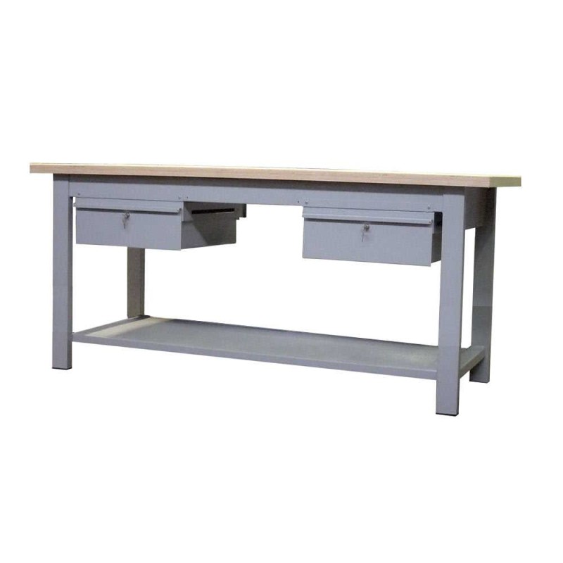 Mod. B120002CF - mm.2000x750x900h - banco con piano superiore in faggio multistrato, piano inferiore e 2 cassetti scorrevoli su cuscinetti a sfera