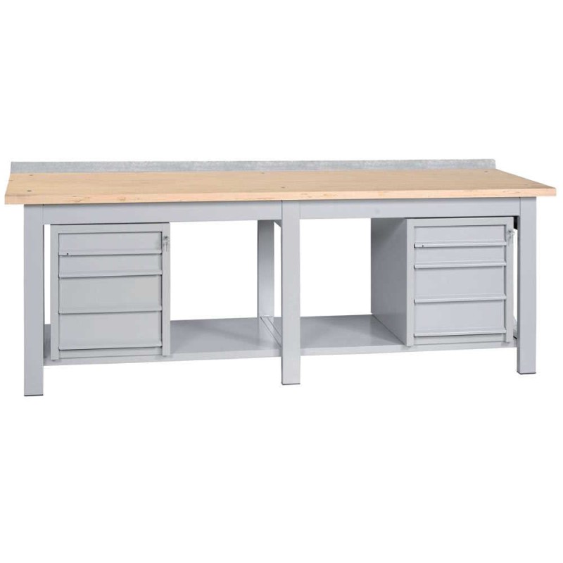 Mod. B830002CRA4CF - mm.3000x750x900h - banco con piano superiore in faggio multistrato, piano inferiore e 2 cassettiere a 4 cassetti scorrevoli su cuscinetti a sfera