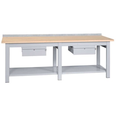 Banco professionale con piano bianco in resina pieghevole e gambe chiudibili in acciaio verniciato, per arredo case, aziende, negozi, comunità, di facile e rapido montaggio con una buona portata, per abitazioni, negozi, show-room, spazi pubblici.