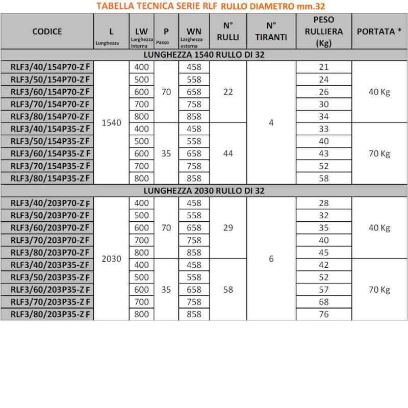 Portata rulliera Kg. 70