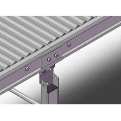 Il collegamento tra rulliere folli può essere effetutuato attraverso l'utilizzo del piede stesso, che scorrendo lungo la sponda posizionata ad una estremità della rulliera può essere utilizzata direttamente come piastra di collegamento con risparmio di tempo e denaro.