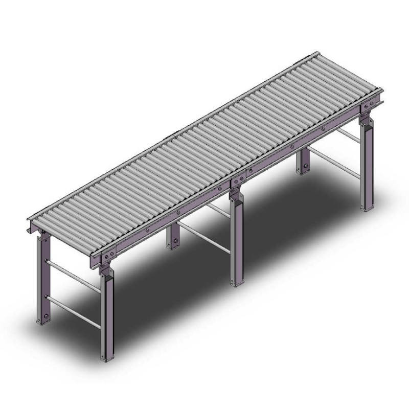 Piedi per rulliere lineari folli a gravità disponibili con larghezze variabili da mm.400-500-600-700-800 e montano il tirante obliquo (solo con mm.500-600-700-800), per aumentare la stabilità e la robustezza.
