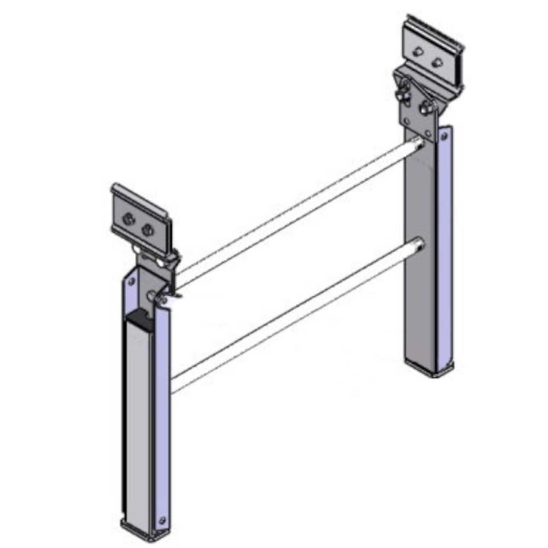 Sostegni per rulliere lineari folli fisse regolabili serie PTF, robusti sostieni in lamiera zincata di spessore mm.2, tiranti zincati per il collegamento delle due spalle Ø16mm. e Ø22mm. con viterie completamente zincate.