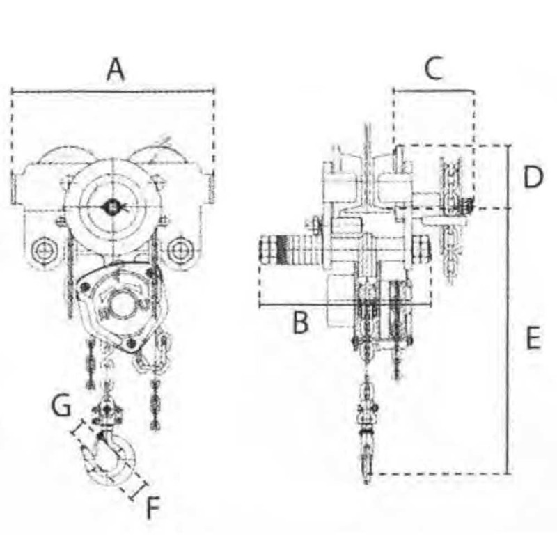 Paranco a catena, combinato con carrello, progettato e costruito per il sollevamento di carichi e realizzato con materiali di ottima qualità, studiato per applicazioni professionali.
