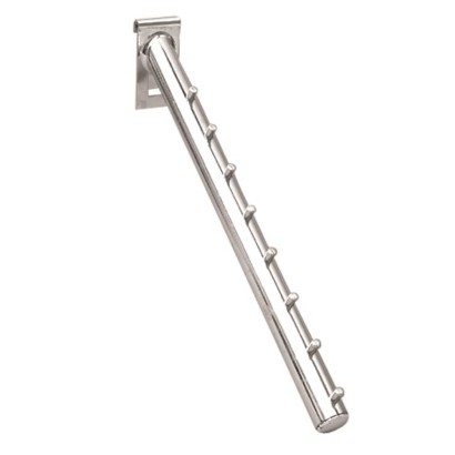 Tubolare in acciaio cromato alto cm.118 diametro cm.1,9 con tappo superiore nero in plastica, mazzetta e piedino regolabile, per assemblaggio ripiani su scaffali, librerie, espositori componibili Archimede Mini-System.