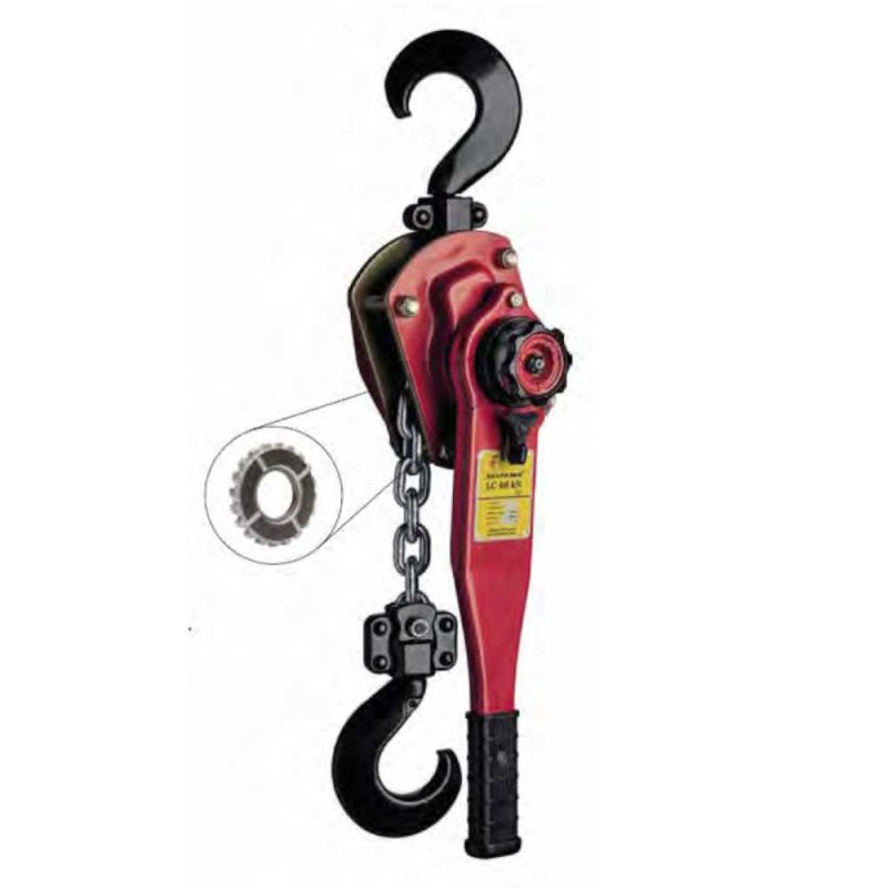 Sollevatore compatto, montacarichi professionale alzatira a leva, con catena di sollevamento manuale e ganci girevoli senza linguette di sicurezza, per trazione, tensionamento, movimentazione e sollevamento.
