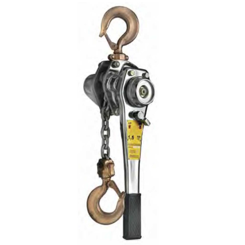 Sollevatore compatto, montacarichi professionale alzatira ATEX a leva, con catena zincata di sollevamento manuale e gancio girevole con linguetta di sicurezza, per trazione, tensionamento, movimentazione e sollevamento.
