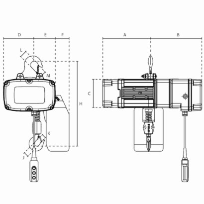 Paranco montacarichi elettrico con carrello portaparanco trifase, sicuro, affidabile nel tempo, resistente all'usura, adatto per gru, carroponti, con in dotazione m.3 di catena di carico di alzata e gancio con linguetta di sicurezza e m.3 di cavo pulsantiera.
