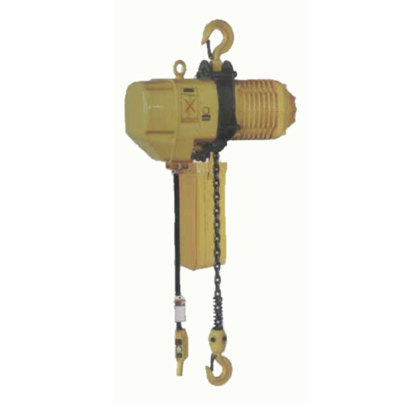 Paranco elettrico con motore monofase per sollevamento a catena ad una velocità, affidabile e sicuro per impianti ed elevazione verticale.