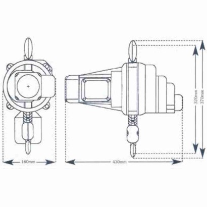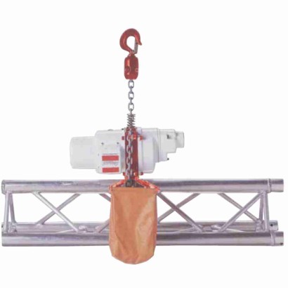 Paranco elettrico composto da un gancio di sospensione solido e robusto con linguetta di sicurezza e da un sistema di carrucole a cui viene trasmesso il movimento tramite l'assistente di catene.