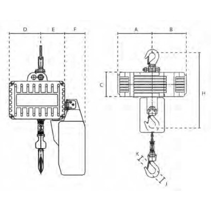 Paranco elettrico professionale portatile composto da un gancio di sospensione solido e robusto con linguetta di sicurezza, progettato per sollevare pesi, attrezzature da lavoro o attrezzature sportive, legname, bricolage e giardinaggio, per il fai da te e moltissime altre attività in aziende, fabbriche, industrie, laboratori, cantieri, hobbistica, eventi.