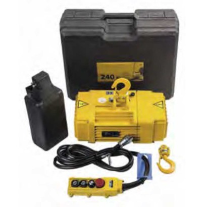 Paranco elettrico con motore monofase, trasportabile in una comoda valigetta, affidabile e sicuro per impianti ad elevazione verticale.