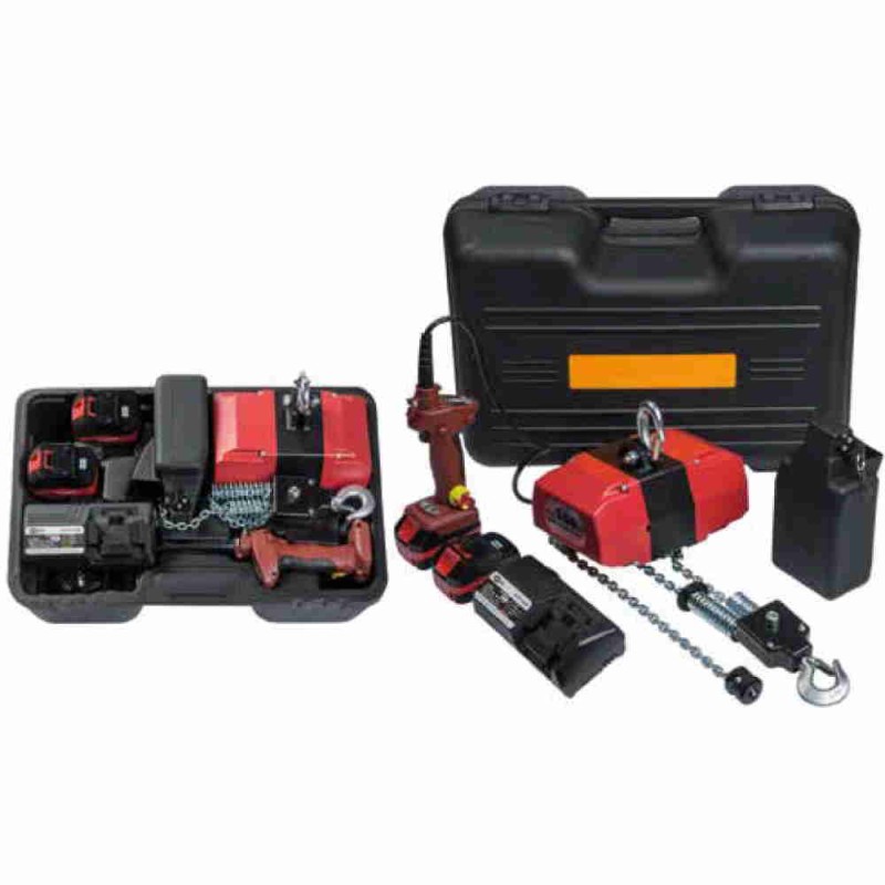 Paranco elettrico portatile a batteria da 18V. comprensivo di m.3 di catena ad 1 tiro per il sollevamento di carichi con un peso massimo di kg.250 e con m.3 di cavo pulsantiera inclusa ed un comodo ed utile kit valigetta per il trasporto in ambienti da lavoro o per sollevare attrezzature sportive, legname, bricolage e giardinaggio, per il fai da te e moltissime altre attività in aziende, fabbriche, industrie, laboratori, cantieri, hobbistica ed eventi.