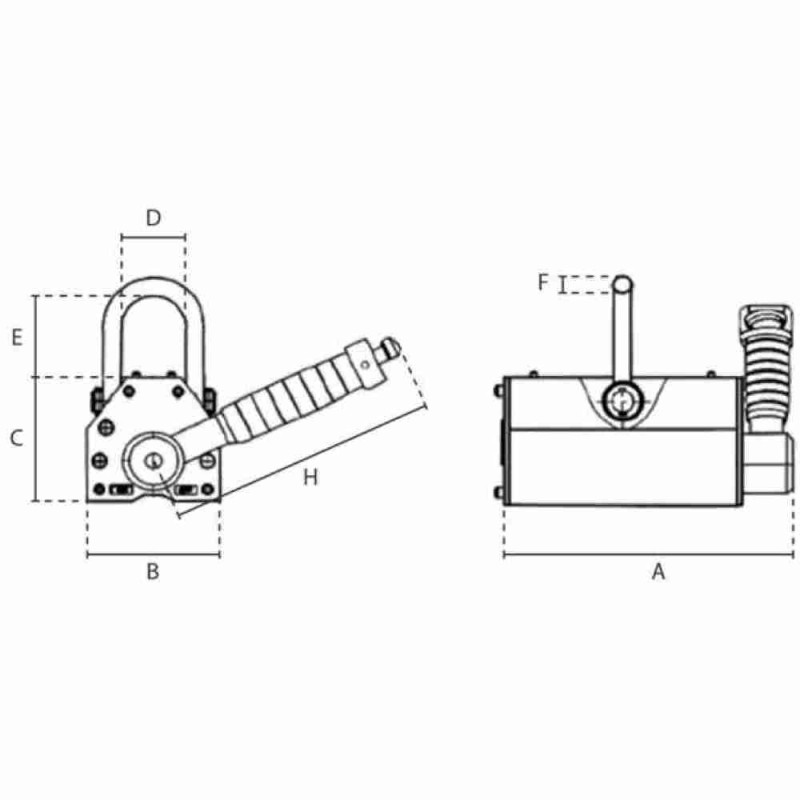 Strumento con calamita di sollevamento per profili tondi e stampi, affidabile e sicuro, non danneggia il carico di sollevamento e non rilascia residuo magnetico.