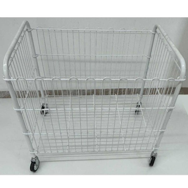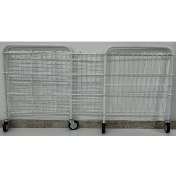 Cestone lavanderia espositore carrellato in acciaio elettroverniciato con struttura in tubo diametro mm.20, con 4 ruote piroettanti per una facile movimentazione su pavimentazione regolare e velocemente richiudibile per un semplice stoccaggio ed un minimo ingombro in fase di trasporto.