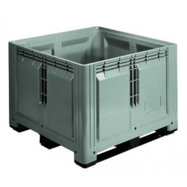 Contenitore PEHD Lt.900 Cassone bins cm.120x120x87h. industria pesante fondo e pareti chiuse con 3 slitte antiribaltamento, colore grigio.