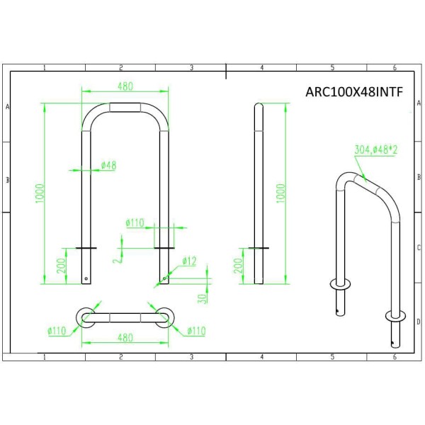 Archetto dissuasore inox satinato da incasso h.1000x480mm antisosta antiparcheggio controllo accessi delimita aree ARC100X48INTF