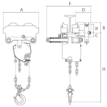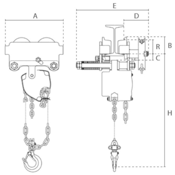 Paranco a catena, combinato con carrello, progettato e costruito per il sollevamento di carichi e realizzato con materiali di ottima qualità, studiato per applicazioni professionali.