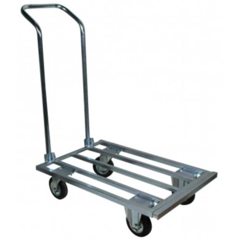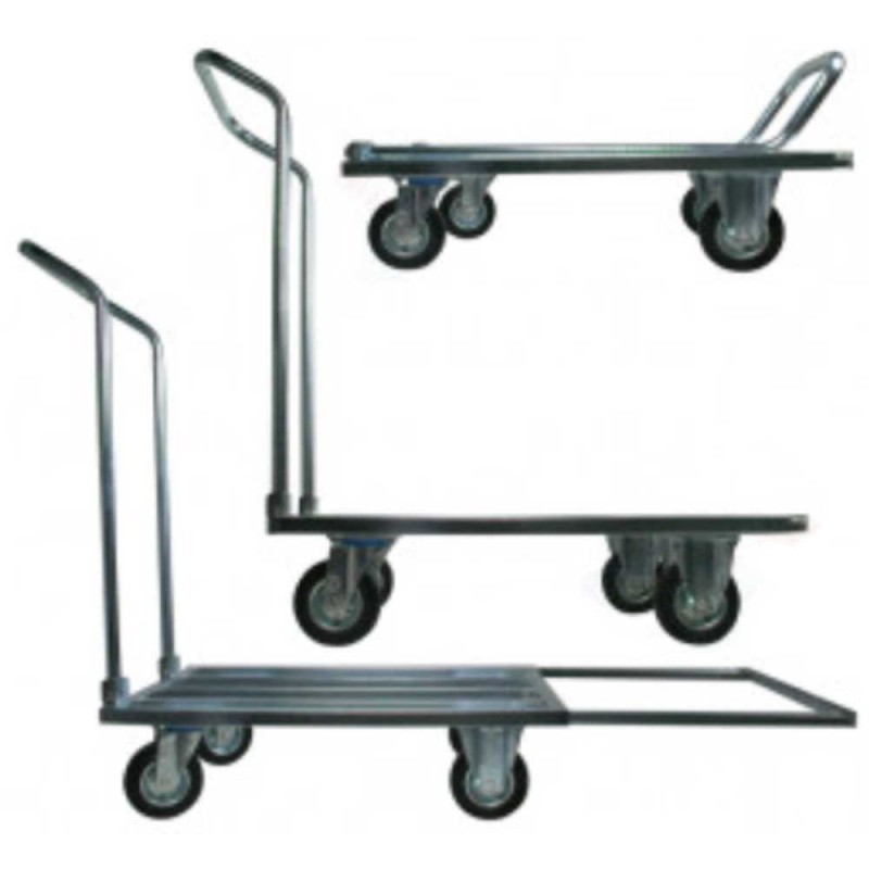 Carrello portacasse a pianale mercino con piano d'appoggio allungabile, compatto mm.500x750/1050x205/1050h, con manico di spinta richiudibile per occupare poco spazio e ridurne l'ingombro per un facile trasporto; struttura zincata industriale per una maggiore protezione dalla corrosione e 4 ruote in gomma piena con portata kg.300.