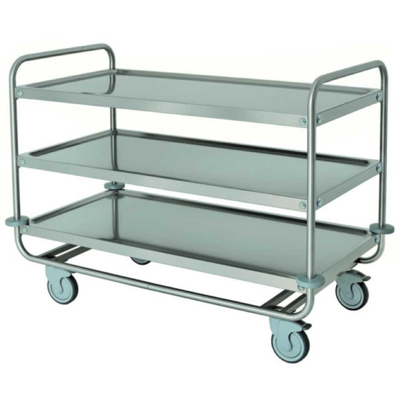 Carrello a 3 vasche inox, facile da pulire e disinfettare soprattutto per l'industria alimentare. E' un'attrezzatura utile sia nel settore della ristorazione che in ambito alberghiero o ospedaliero. E' un carrello da portata in acciaio inossidabile di alta qualità con un design elegante ed una costruzione robusta per offrirti spazio di archiviazione anche all'interno di uffici e negozi e supermercati.