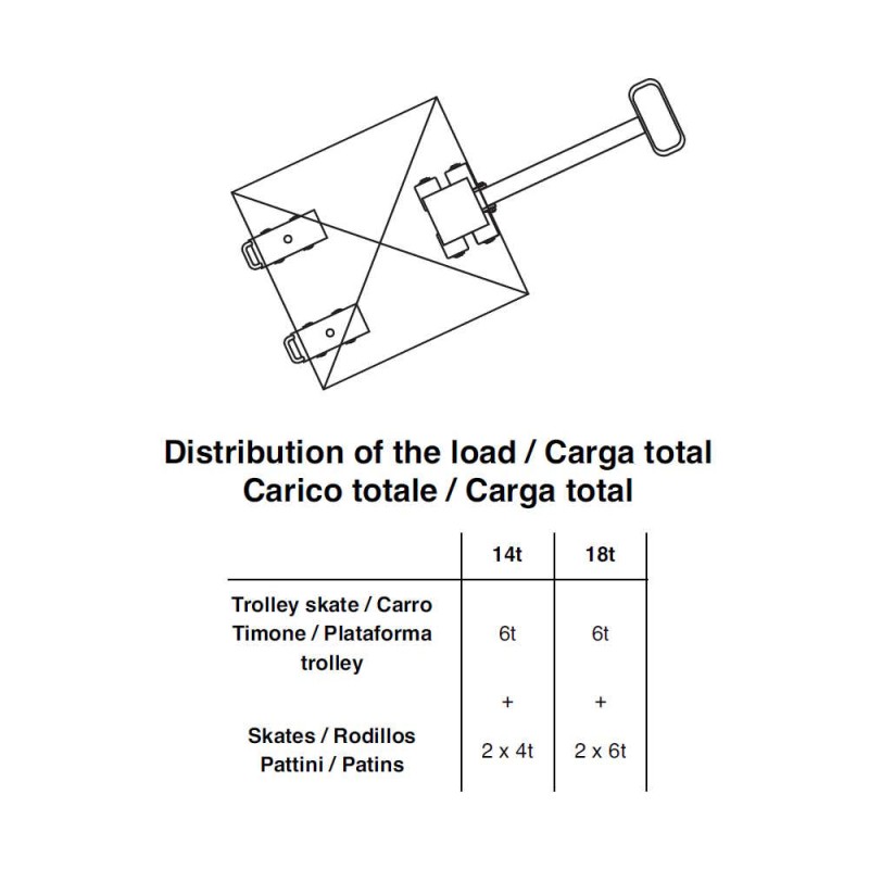 stessi e possa essere spostato in piena stabilità. (Si consiglia l’utilizzo di una barra di collegamento tra i pattini in modo da garantire al meglio l’orientamento degli stessi durante lo spostamento).