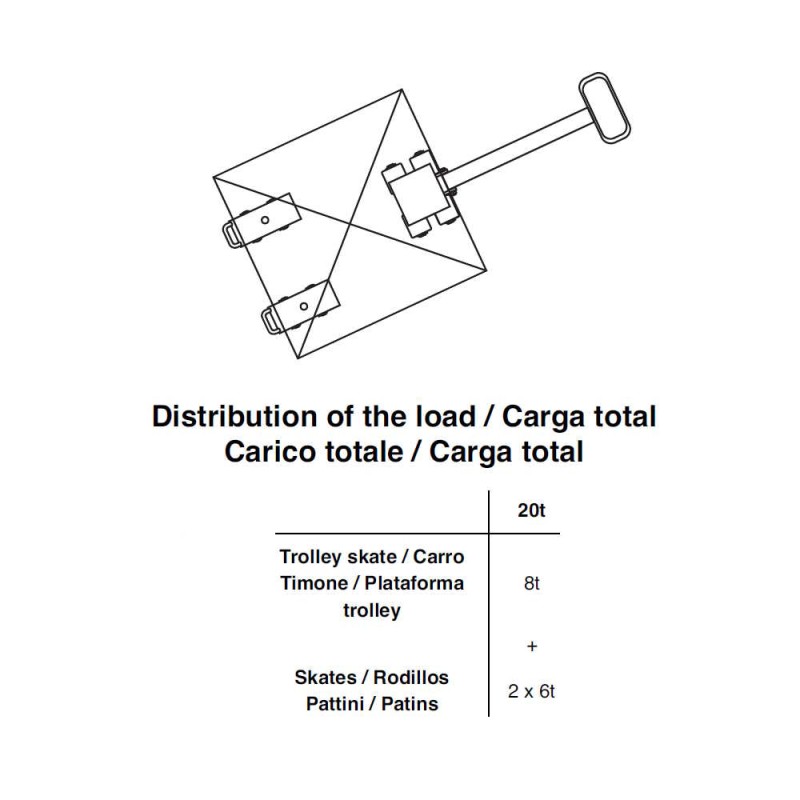 stessi e possa essere spostato in piena stabilità. (Si consiglia l’utilizzo di una barra di collegamento tra i pattini in modo da garantire al meglio l’orientamento degli stessi durante lo spostamento).
