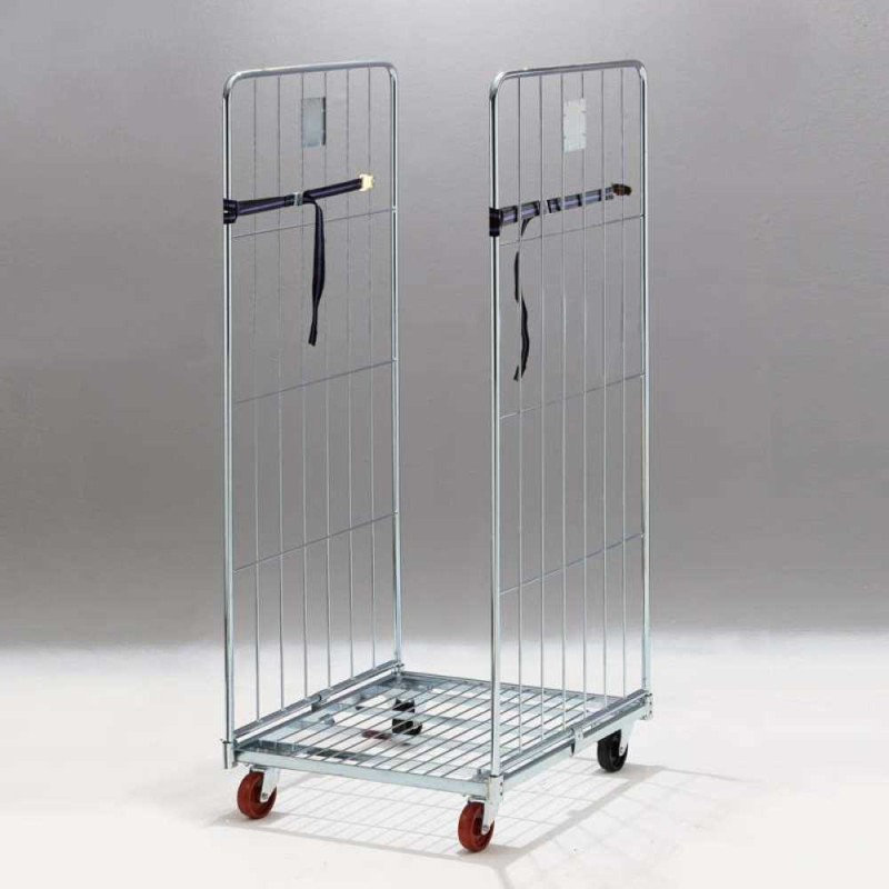 Roll container standard smontabile contenitore a 2 pareti, con base con 4 ruote, ideale per trasporto merci dai magazzini centrali a quelli periferici, utilizzato per movimentazione, esposizione, vendita prodotti vari per spostamento cartoni, sacchi, pacchi, nei supermercati nelle lavanderie, in ospedali, alberghi, portinerie, uffici, logistiche ed in molti settori e centri distribuzione e vendita.