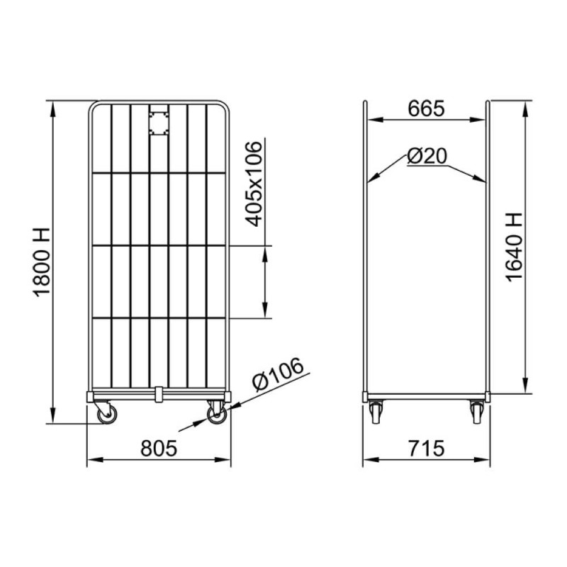 Roll container standard smontabile contenitore a 2 pareti, con base con 4 ruote, ideale per trasporto merci dai magazzini centrali a quelli periferici, utilizzato per movimentazione, esposizione, vendita prodotti vari per spostamento cartoni, sacchi, pacchi, nei supermercati nelle lavanderie, in ospedali, alberghi, portinerie, uffici, logistiche ed in molti settori e centri distribuzione e vendita.