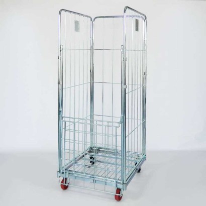 Il carrello è composto da due pareti laterali ed una terza parete sul fondo, per meglio contenere le merci ed una quarta parete apribile a metà, per agevolare il carico e lo scarico del materiale, per trasportare e proteggere le merci e si possono aggiungere come accessori fino a tre ripiani, per farlo diventare uno scaffale e portare più oggetti ordinatamente oppure una barra appendiabiti per il settore tessile e delle targhette utili per la logistica o delle semplici cinghie per mettere più in sicurezza il carico.