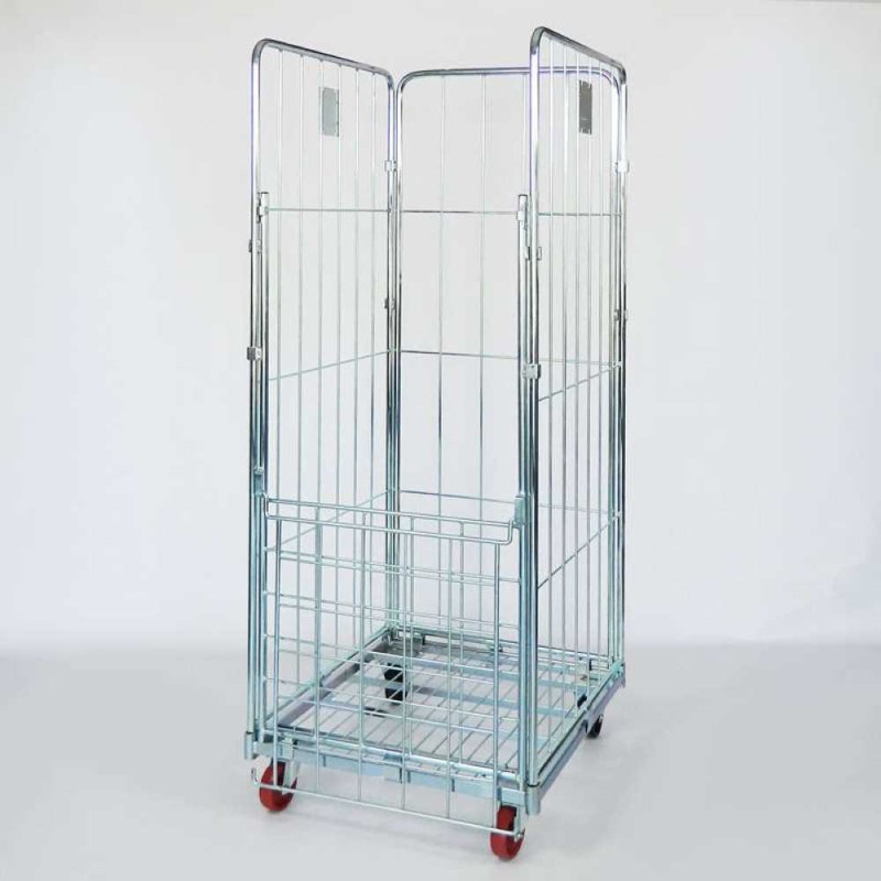 Roll container standard smontabile contenitore a 4 pareti, con base a 4 ruote, ideale per trasporto merci dai magazzini centrali a quelli periferici, utilizzato per movimentazione, esposizione, vendita prodotti vari per spostamento cartoni, sacchi, pacchi, nei supermercati nelle lavanderie, in ospedali, alberghi, portinerie, uffici, logistiche ed in molti settori e centri distribuzione e vendita.