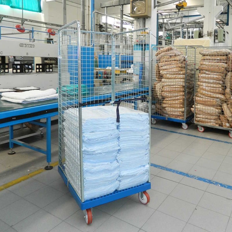 Rollcontainer in acciaio con base in plastica porta biancheria per lavanderia con sponde a griglia robuste è il carrello su 4 ruote con portata Kg.300, ideale per il trasporto ed il ritiro della biancheria grazie alla particolare maglia 50x50 che non permette ai capi di fuoriuscire dal roll container.