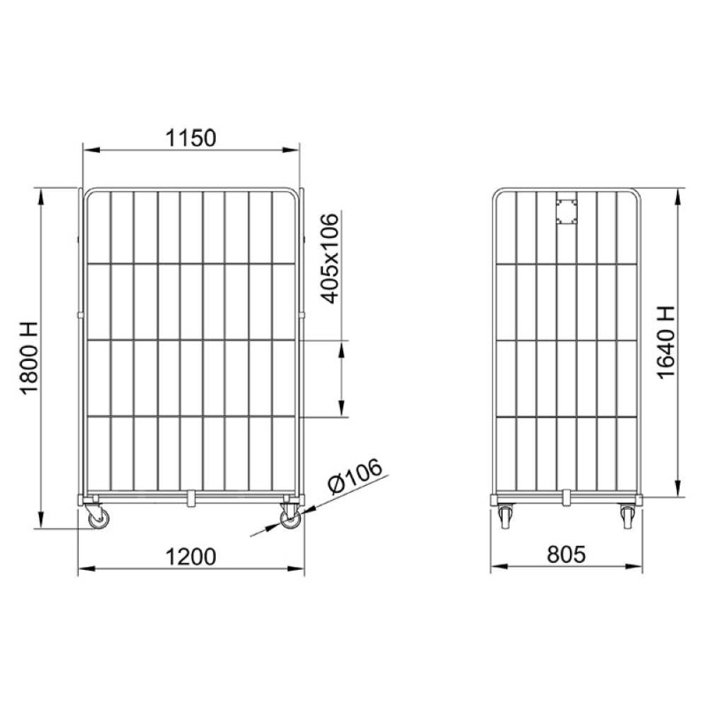 Roll container scaffale contenitore grande su 4 ruote standard mm.1200x805x1800h con 3 pareti a griglia in filo metallico, ideale per trasporto sicuro delle merci dai magazzini centrali a quelli periferici e nel settore lavanderia, hotel, scuole, alberghi, comunità, enti pubblici, per il trasporto e il ritiro della biancheria, per attrezzature per aziende ed uffici, per lo stoccaggio e movimentazione dei prodotti come scatole, cartoni, sacchi, pacchi nei magazzini e nei centri logistici, e nei centri commerciali o per l'esposizione di articoli atti alla vendita nei supermercati.