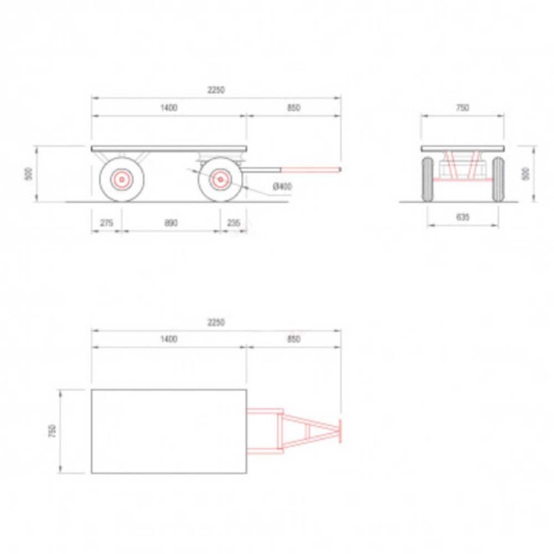 Dimensioni carrello mm 1400/2250x750x500