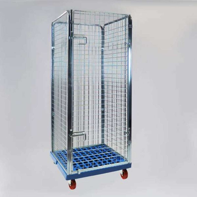il roll container con base plastica per lavanderia è il carrello ideale per il trasporto e il ritiro della biancheria: la particolare maglia 50x50 non permette ai capi di fuoriuscire dal roll container.