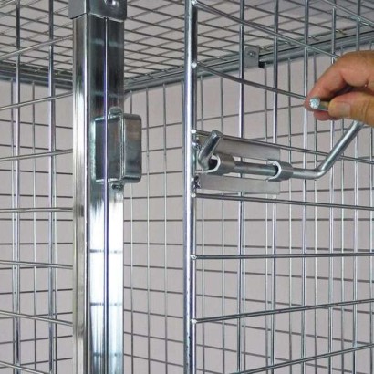 Rollcontainer realizzato con pareti in tubo quadro brevettato che, fissate alla base e tra loro tramite viti e dadi, costituiscono una struttura rigida, robusta e inviolabile (la particolare maglia 50x50 non permette ai capi ed alle merci di fuoriuscire dal roll container), ed è possibile bloccare la porta anteriore con sigilli o tradizionali lucchetti.